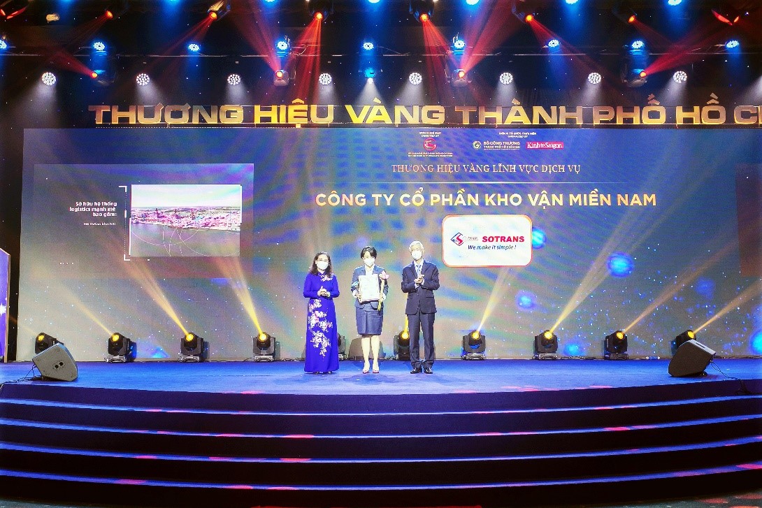 Tối ngày 06/01/2022, SOTRANS Group được vinh danh “Thương hiệu Vàng TP HCM 2021”, nhóm ngành Khai thác Cảng và Logistics. Đây là giải thưởng của UBND TP HCM, do Sở Công Thương TP HCM phối hợp cùng Tạp chí Kinh tế Sài Gòn tổ chức, nhằm tôn vinh 30 doanh nghiệp TP. HCM bao gồm các lĩnh vực công nghiệp, thương mại và dịch vụ có thành quả xây dựng thương hiệu ấn tượng, gắn với sự nhận diện về Sài Gòn – TP HCM.