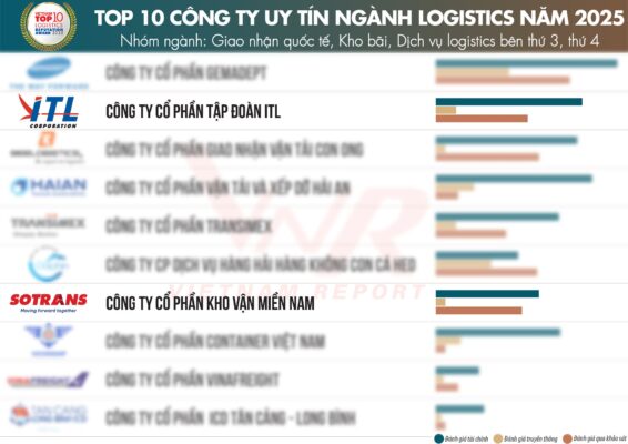 Ngày 11/12/2025, Công ty Cổ phần Báo cáo Đánh giá Việt Nam (Vietnam Report) chính thức công bố Top 10 Công ty Logistics uy tín nhất Việt Nam năm 2025. Trong đó, SOTRANS Group cùng SOWATCO và ITL tiếp tục được vinh danh trong trong bảng xếp hạng danh giá này.