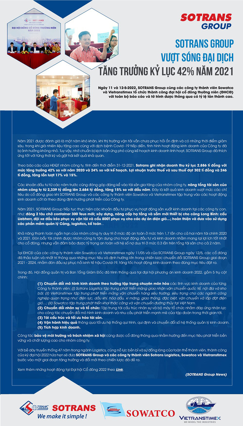 SOTRANS vượt sóng đại dịch tăng trưởng kỷ lục 42% năm 2021